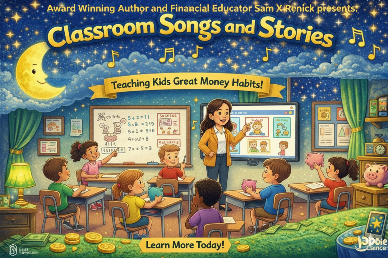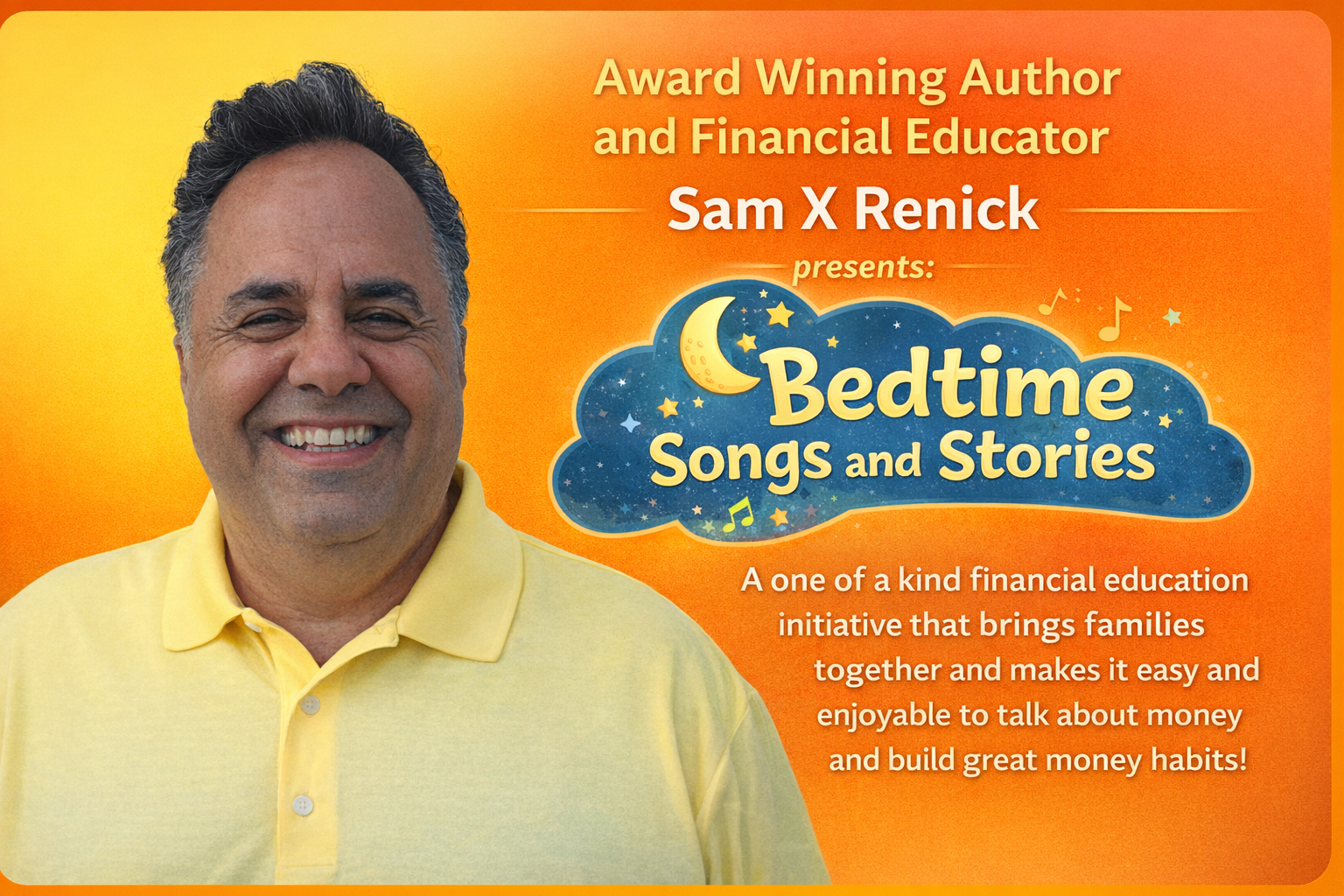 Now, Sam is proud to introduce a new initiative and complementary enterprise designed to bring these lessons into the heart of the home: Bedtime Songs and Stories that Teach Children Great Money Habits Before They Fall Asleep!