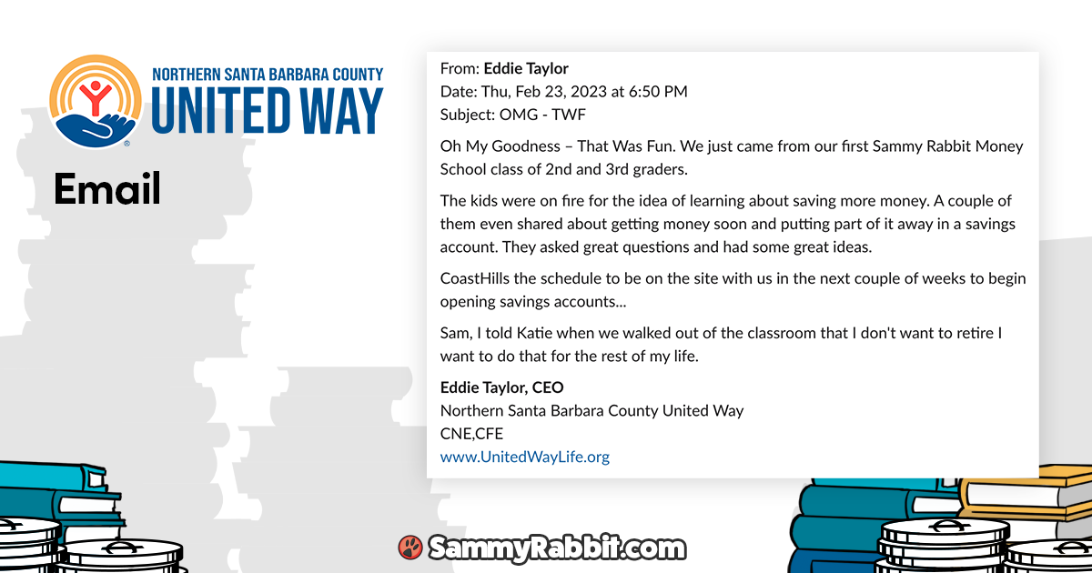 This three-level collaboration between United Way of Northern Santa Barbara County, its community partners, and Sammy Rabbit has provided children and families with a rich array of resources and experiences to strengthen their money, reading, and language skills.